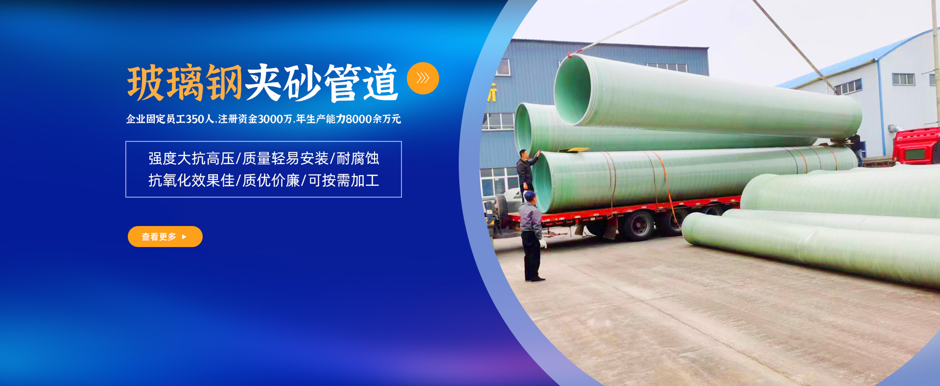 占地3萬(wàn)平方米,建筑面積1.2萬(wàn)平方米,企業(yè)固定員工350人,注冊(cè)資金3000萬(wàn),年生產(chǎn)能力8000余萬(wàn)元,屬國(guó)內(nèi)目前玻璃鋼行業(yè)規(guī)格較大的廠家之一
